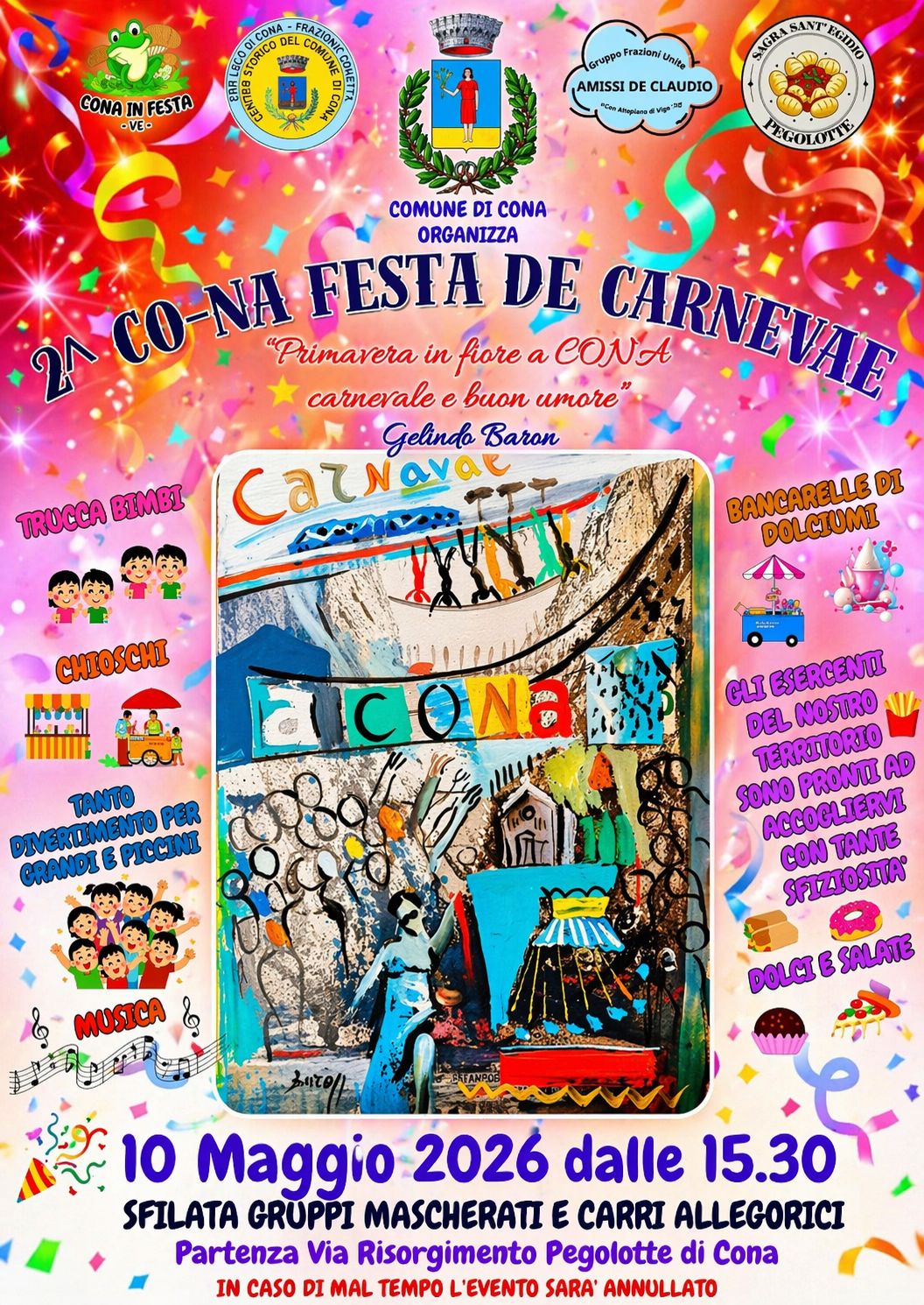 Il Comune di Cona è lieto di invitarvi a un pomeriggio di festa, colori e allegria!😊