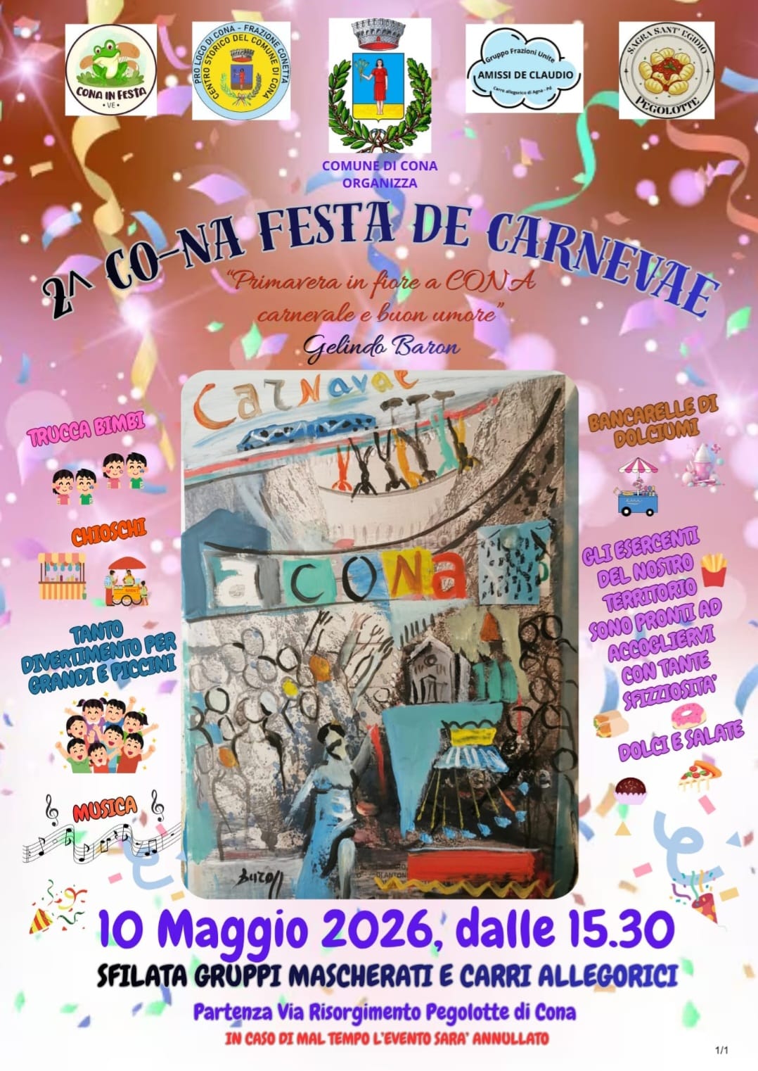 Il Comune di Cona è lieto di invitarvi a un pomeriggio di festa, colori e allegria!😊